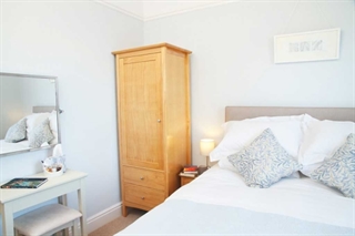 Large, comfortable, bay windowed room at the front of the house, with a superking size bed which can be made into 2 comfortable 90cm/3ft beds. Modern ensuite bathroom providing a large shower. Free wi-fi, Freeview TV and tea and coffee making facilities including a silent fridge with fresh milk and bottled water. Please add a note to your booking if you need the room configured as twin beds.